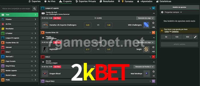 O 2kbet oferece uma grande seleção de opções de apostas em e-sports com probabilidades competitivas